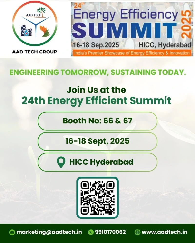 AAD Tech is proud to participate in the 24th Energy Efficient Summit 2025 at HICC, Hyderabad. This leading platform brings together industry experts, innovators, and sustainability leaders to discuss the future of energy efficiency and responsible development. From 16–18 September 2025, we will showcase our advanced solutions designed to optimize energy performance, reduce operational costs, and support sustainable infrastructure. Visit us at Booth No. 66 & 67 to explore how our technologies are driving innovation and helping industries move toward a greener, more efficient future.
